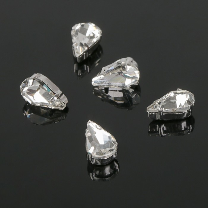 Стразы в цапах (набор 5 шт.), 6×10 мм, цвет белый в серебре