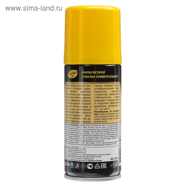 Смазка универсальная Astrohim, 140 мл, аэрозоль, АС - 4581
