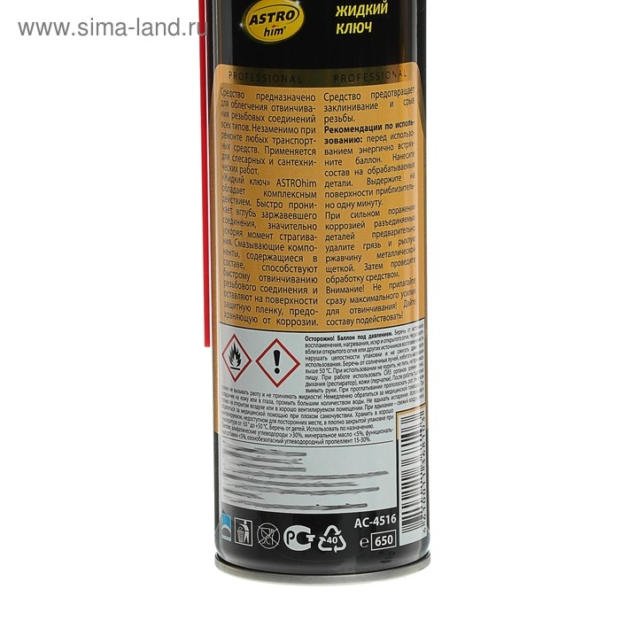Жидкий ключ ASTROhim предназначен для облегчения отвинчивания резьбовых соединений всех типов.