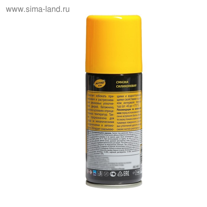 Профессиональная концентрированная смазка Astrohim для ухода за механическими соединениями в автомобиле (замки и петли дверей, капота, багажника, стеклоподъемники, тросы, личинки замков, приводы и направляющие). Незаменимое средство для обслуживания промышленного оборудования. Помогает избежать примерзания и растрескивания резиновых уплотнений дверей, багажника, капота в условиях отрицательных температур. Профессиональная формула смазки содержит концентрированную смесь силиконовых полимеров, которые образуют на поверхности тонкую пленку с высокими смазывающими и водоотталкивающими свойствами в широком интервале температур (от -40 до +170 °С). Смазка способна оставаться на поверхности после многочисленных моек и при частом перепаде температур.