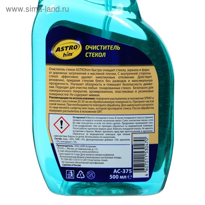 Очиститель стекол Astrohim, 500 мл, спрей, АС - 375
