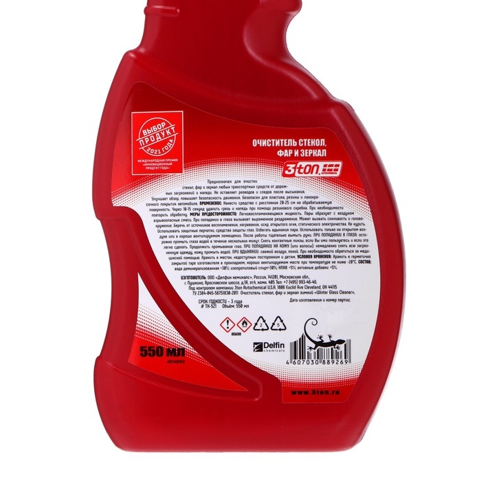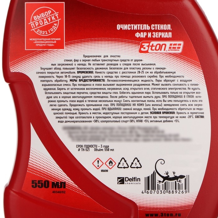Очиститель стекол, фар и зеркал 3ton, зимний, спрей, 550 мл ТН-521