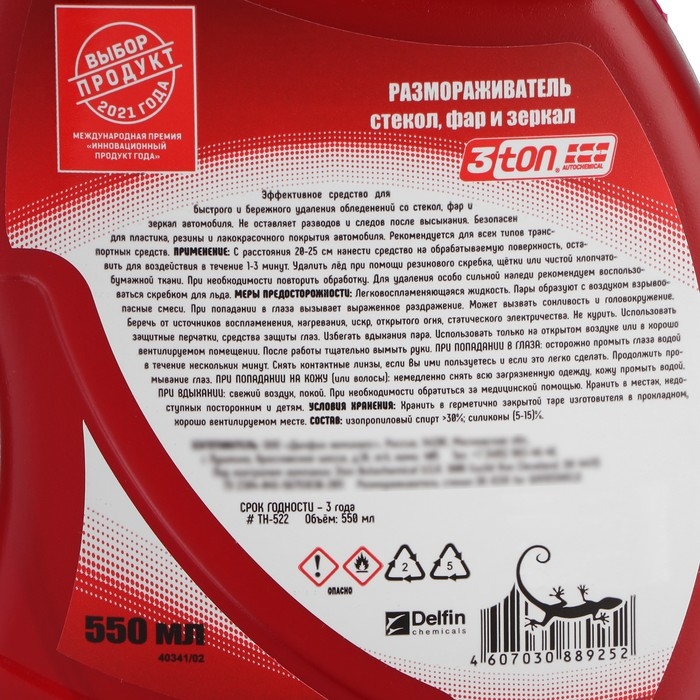 Размораживатель стекол, фар и зеркал 3ton, 550 мл ТН-522