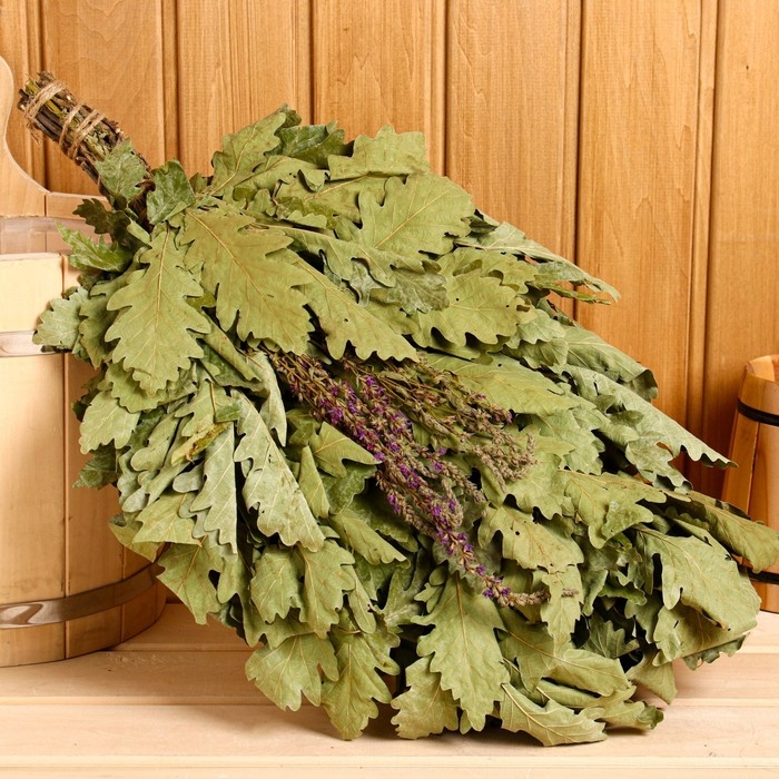 - дубовый веник помогает снять напряжение и усталость после физических нагрузок