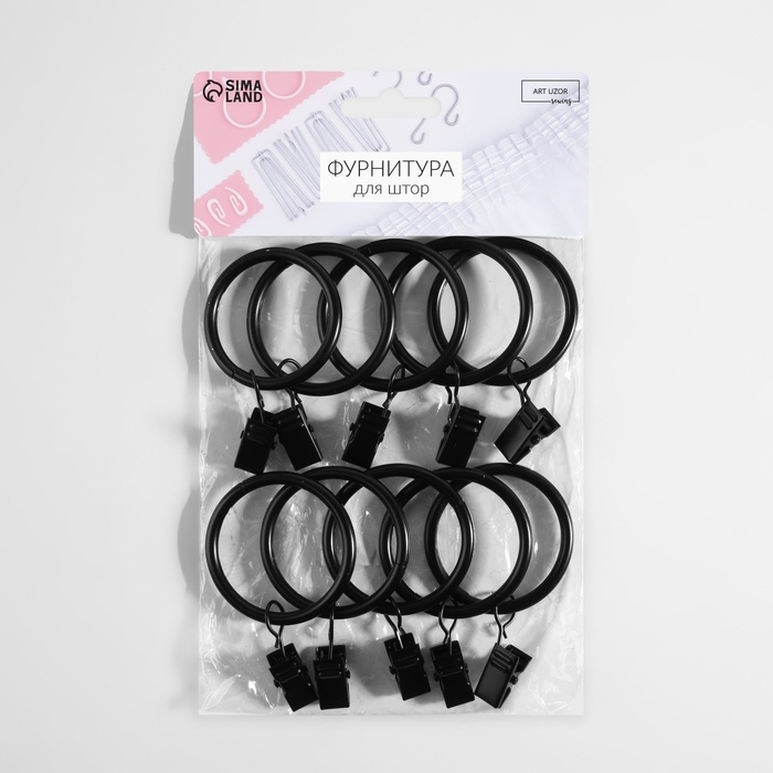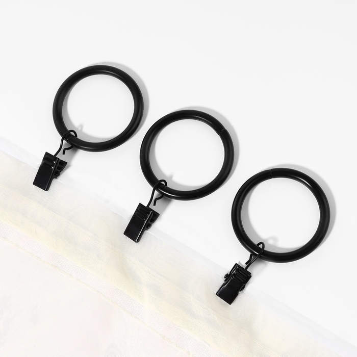 Кольцо для карниза, с зажимом, d = 38/48 мм, 10 шт, цвет чёрный