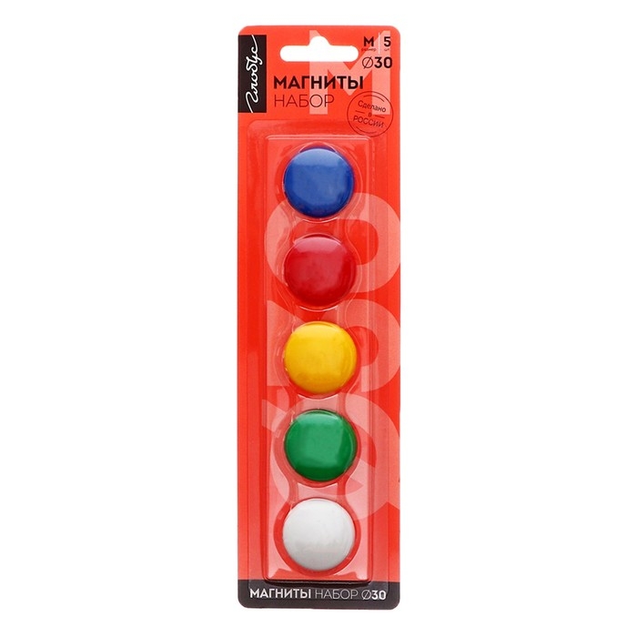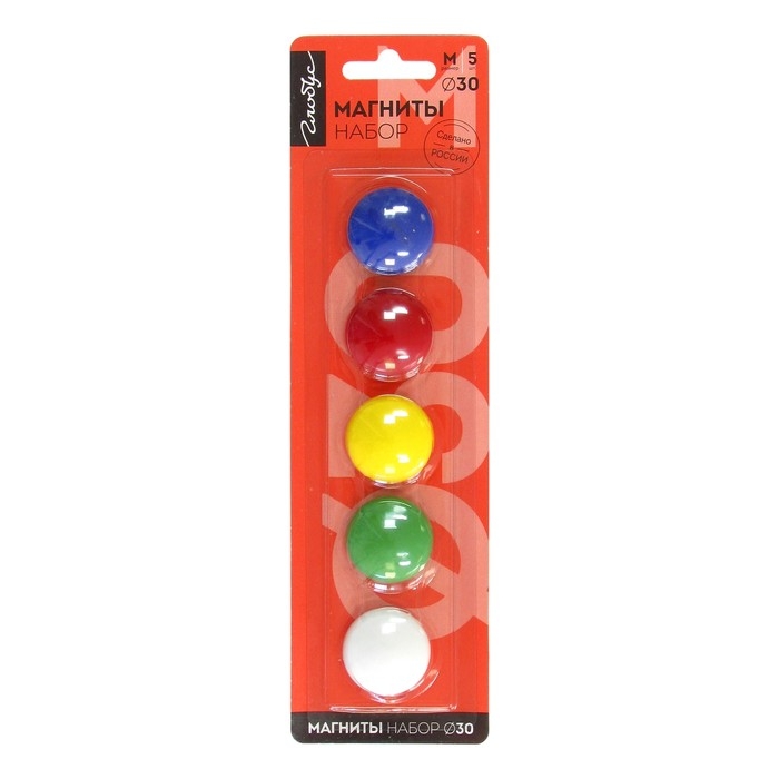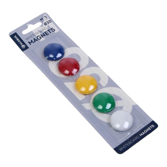 Магниты для досок 30 мм, 5 штук, GLOBUS цветные, в блистере