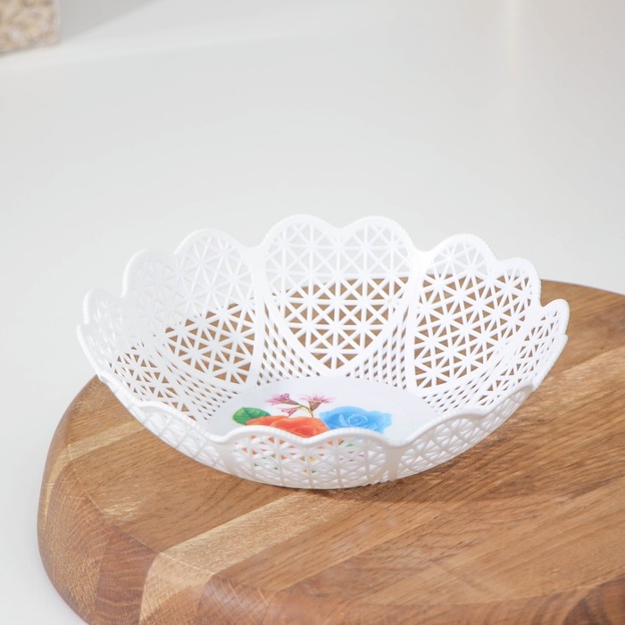 Корзинка для фруктов и хлеба «Зефир. Принт», пластик, d=20 см, белая