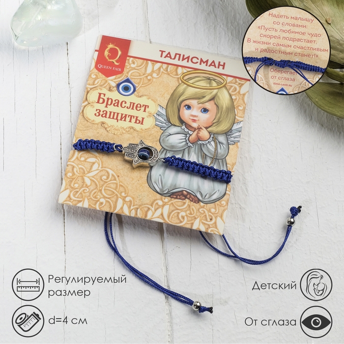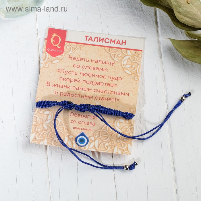 Браслет-оберег «Детский» глазик в плетении, цвет синий в чернёном серебре, d=4 см
