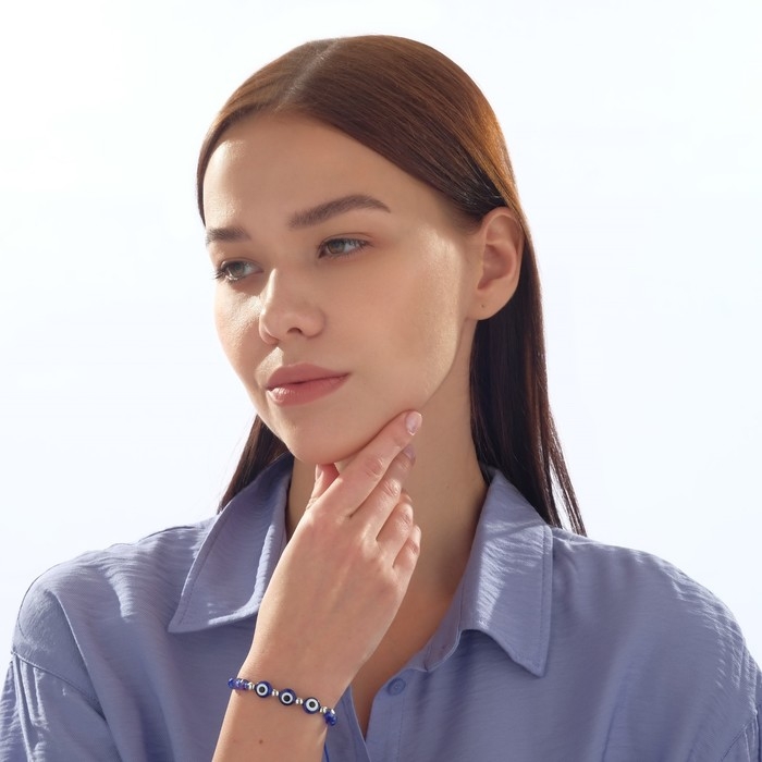 Браслет-оберег «Детский» глазки малые, цвет синий в серебре, d=3,5 см