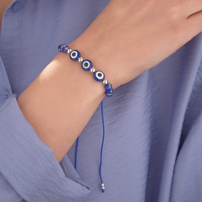 Браслет-оберег «Глазик» трио, цвет синий, d=6 см