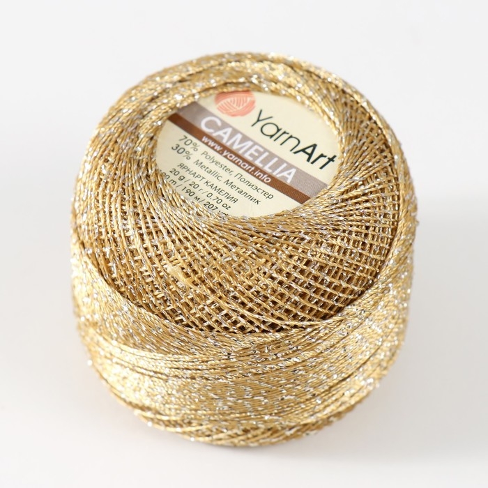 Пряжа "Camelia" 70% полиэстер, 30% люрекс 190м/20гр (2440 золото)