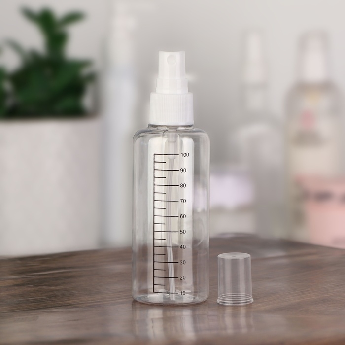 Бутылочка для хранения, с распылителем, со шкалой деления, 100 мл, цвет белый/прозрачный