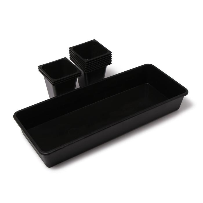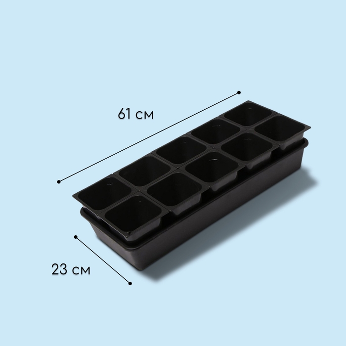 Набор для рассады: стаканы по 1 л (10 шт.), поддон 61 × 23 см, чёрный