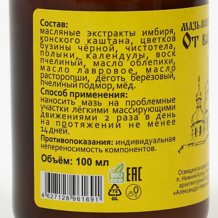 Мазь «Монастырская От варикоза» Стекло 100 мл.