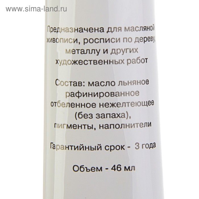 Краска масляная в тубе 46 мл, Гамма "Студия", №001 белила цинковые