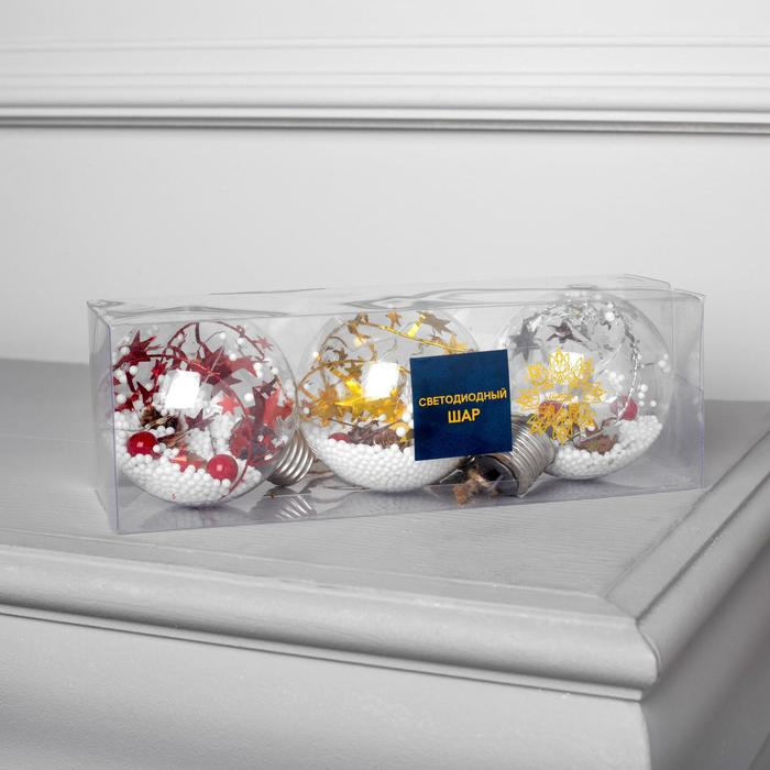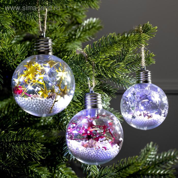 Набор ёлочных шаров «Мишура звёзды» 3 шт., батарейки, 5 LED, свечение белое