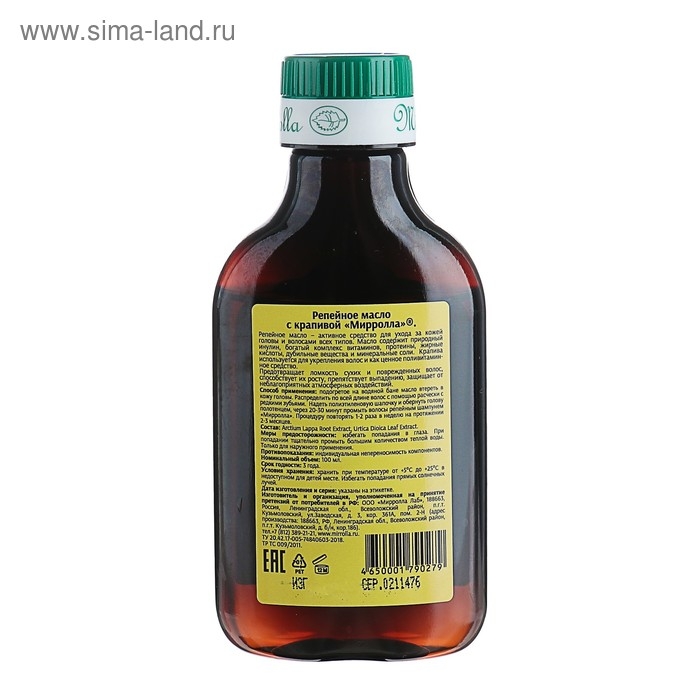 Репейное масло Mirrolla с крапивой, 100 мл