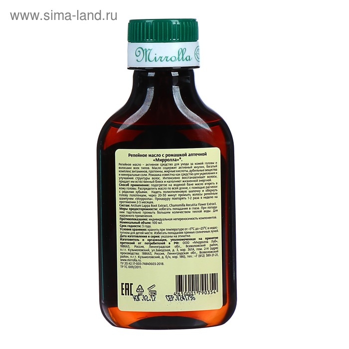 Репейное масло Mirrolla с ромашкой аптечной, 100 мл