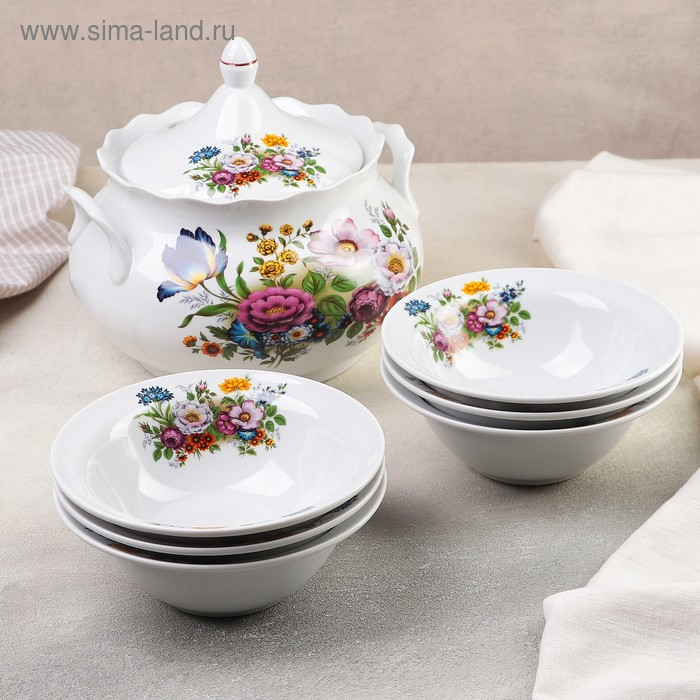 Набор фарфоровый для пельменей «Букет цветов», 7 предметов