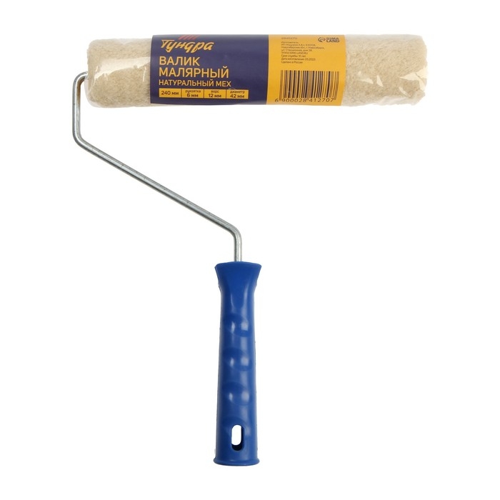 Валик ТУНДРА, натуральный мех, 240 мм, рукоятка d=6 мм, D=42 мм, ворс 12 мм