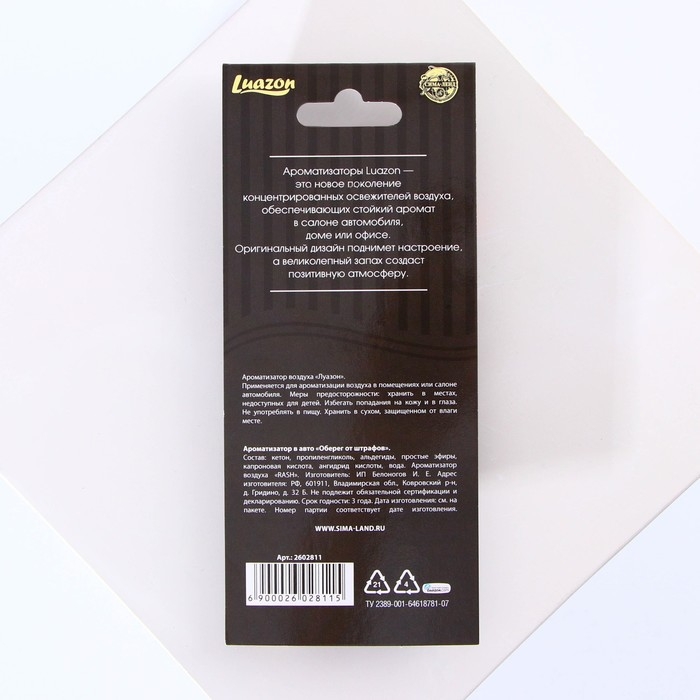 Это оригинальный и полезный подарок для всех любителей езды с ветерком! Он сделает более комфортными ежедневные путешествия по трассам и пробкам. Стильный дизайн и приятный запах не оставят равнодушными ни владельца машины, ни пассажиров.