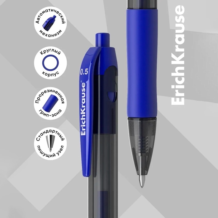 Ручка гелевая автоматическая Erich Krause SMART-GEL, узел 0.5 мм, чернила синие, длина линии письма 500 метров