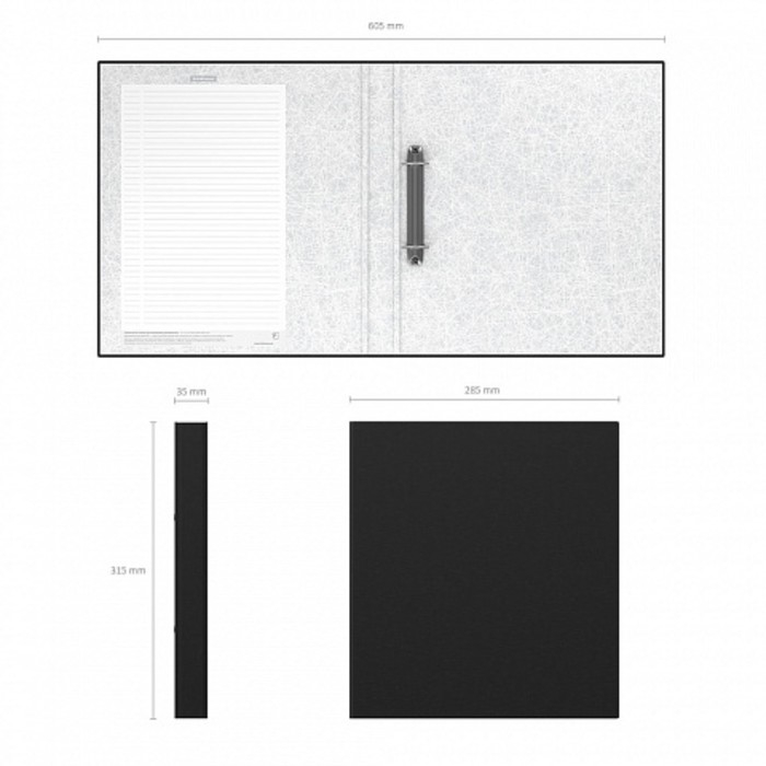 Папка - регистратор формата А4 снабжена механизмом на двух O-кольцах диаметром 25 мм.