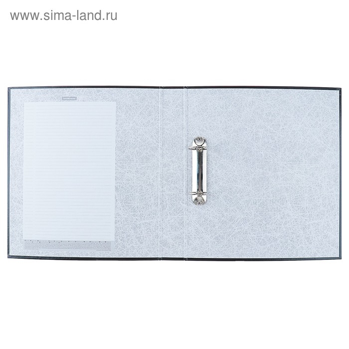 Папка - регистратор формата А4 снабжена механизмом на двух D-кольцах диаметром 26 мм. Изготовлена из плотного картона толщиной 2 мм, покрытого специальным износостойким материалом с фактурным тиснением. Корешок папки шириной 50 мм оснащен прозрачным пластиковым карманом со сменной этикеткой для маркировки. Вместительность до 350 листов бумаги плотности 80 г/м2. На форзаце есть шаблон для оглавления.