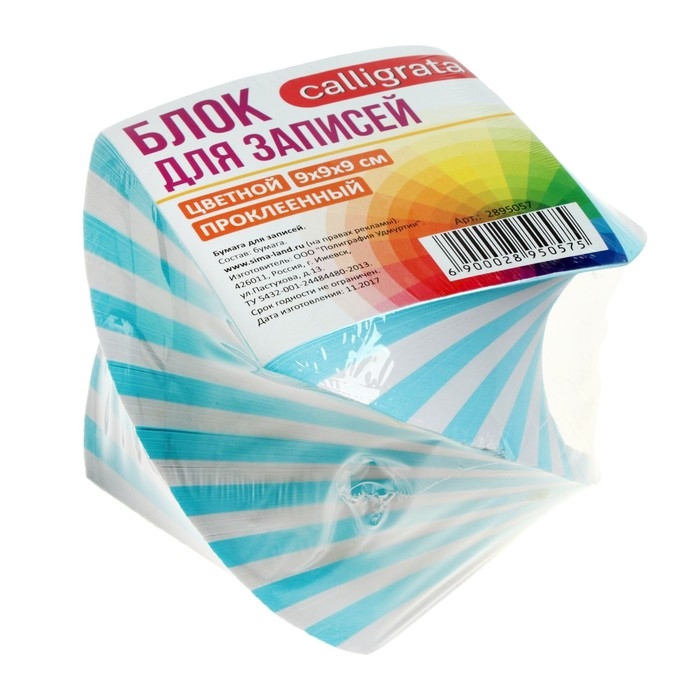 Блок бумаги для записей, на склейке, 9х9х9 см, спираль, пастель, белый