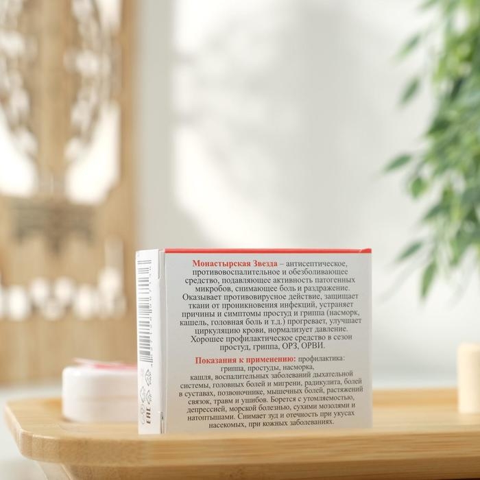 Крем-бальзам «Монастырская звезда» помогает при насморке, кашле, болях в суставах, радикулитах, ломоте, мигрени.