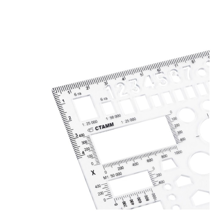 Линейка-трафарет, пластик, с транспортиром, для черчения фигур, МИКС