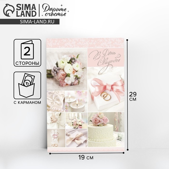 Открытка с карманом для денег «В день свадьбы», 19 х 29 см
