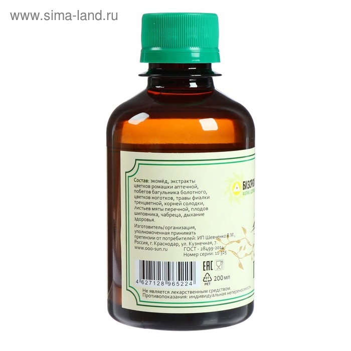Состав: горный мёд, медовый экстракт: ромашки аптечной цветки, багульника болотного побеги, ноготков цветки, фиалки трёхцветной трава, солодки корни, мяты перечной листья, плоды шиповника, чабрец.