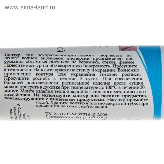 Используется для создания объемных рисунков на различных поверхностях: керамике, стекле, фаянсе. Отлично подходят для декорирования стеклянных и керамических поверхностей красками, имитируя витражи.