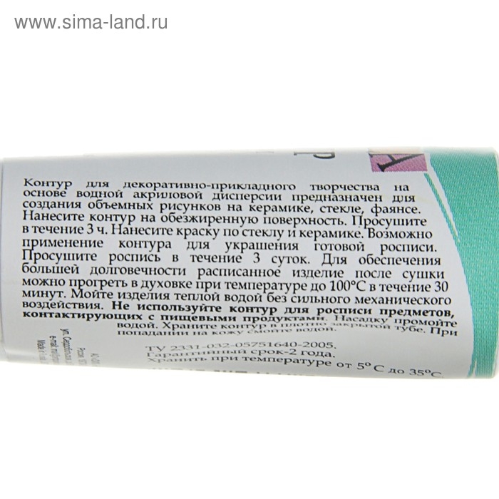 Используется для создания объемных рисунков на различных поверхностях: керамике, стекле, фаянсе. Отлично подходят для декорирования стеклянных и керамических поверхностей красками, имитируя витражи.