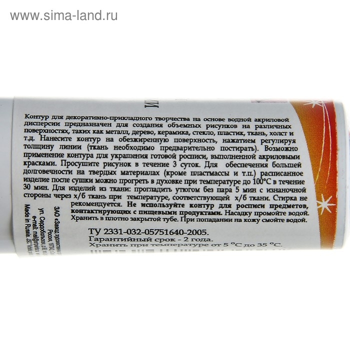 Не используйте контуры для росписи предметов, контактирующих с пищевыми продуктами.