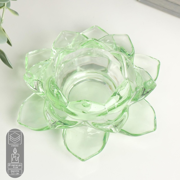 Подсвечник стекло на 1 свечу "Лотос" зелёный 5,5х12х12 см