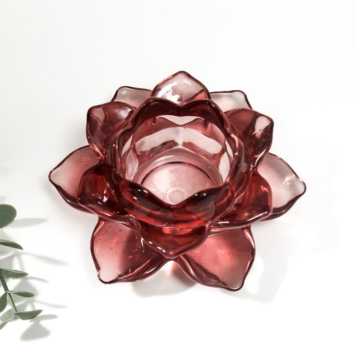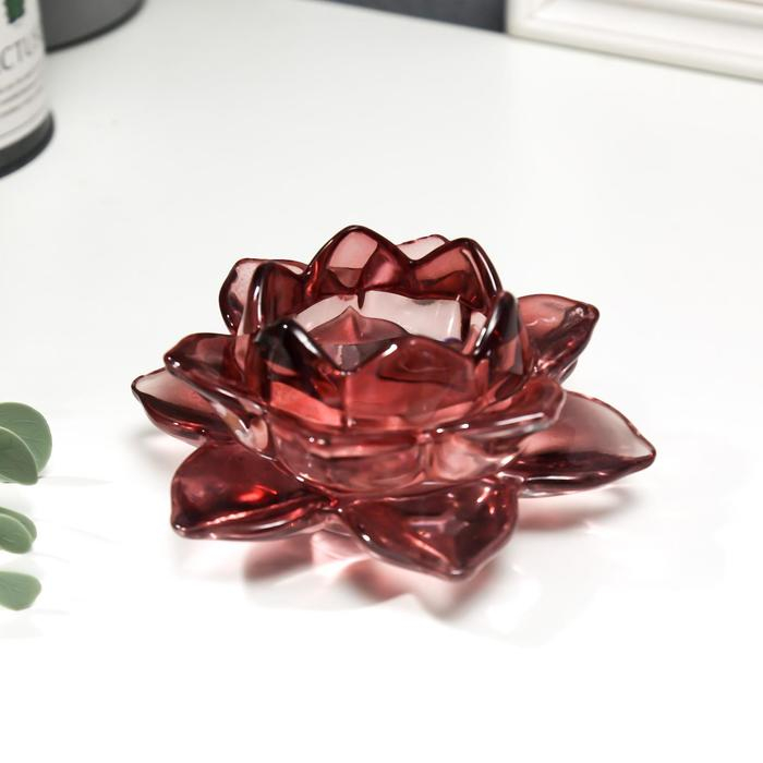 Подсвечник стекло на 1 свечу "Лотос" фиолетовый 5,5х12х12 см