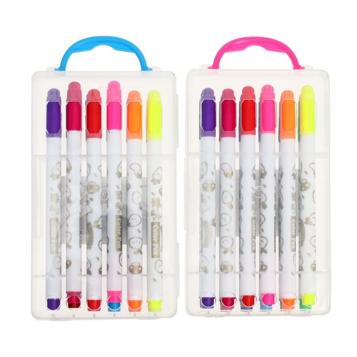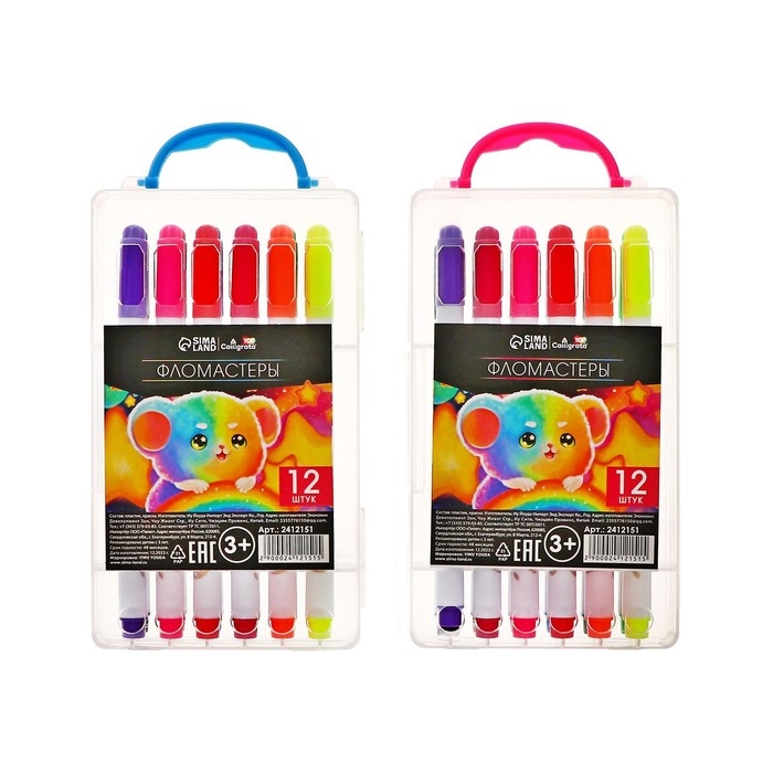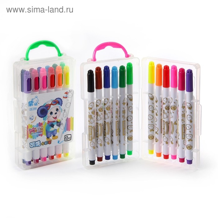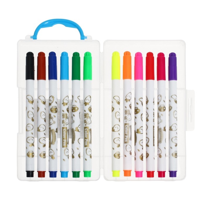 Фломастеры 12 цветов "Мышка", в пластиковом пенале с ручкой, вентрилируемый колпачок, МИКС