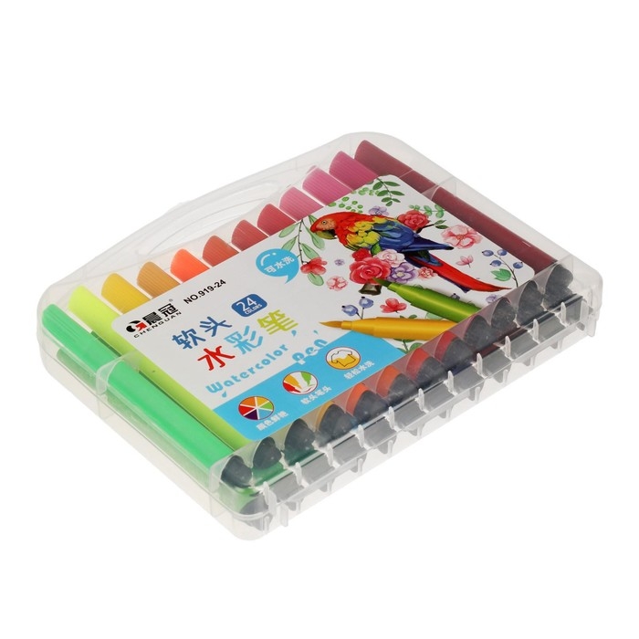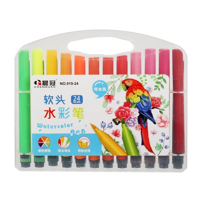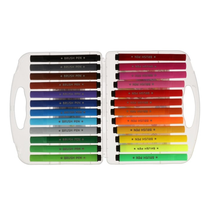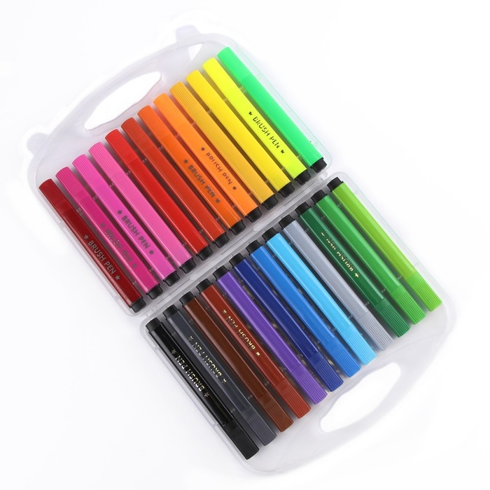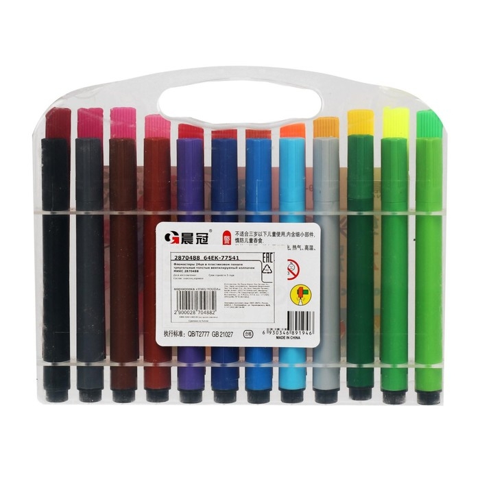 Фломастеры 24 цвета, в пластиковом пенале, треугольные, утолщённые, вентилируемый колпачок, МИКС