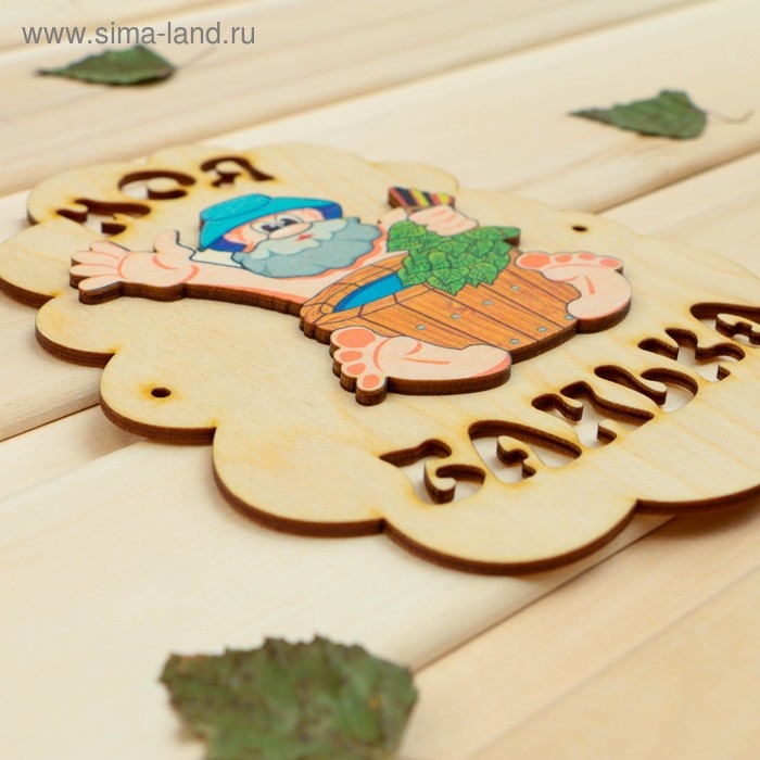 Табличка для бани "Моя банька", дед с шайкой, 17.5х13см