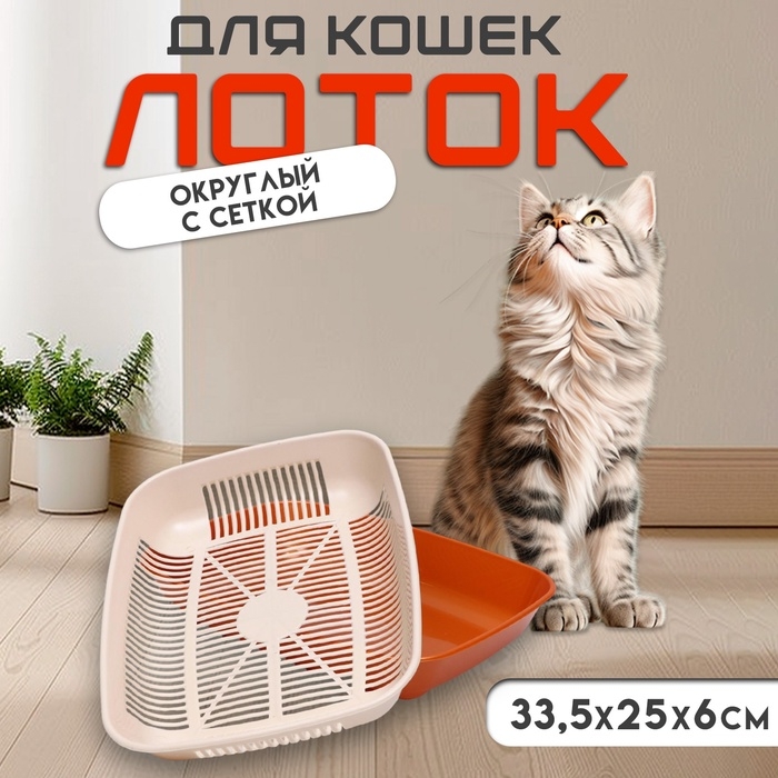 Лоток кошачий имеет сетку в комплекте, он удобной формы без острых углов.