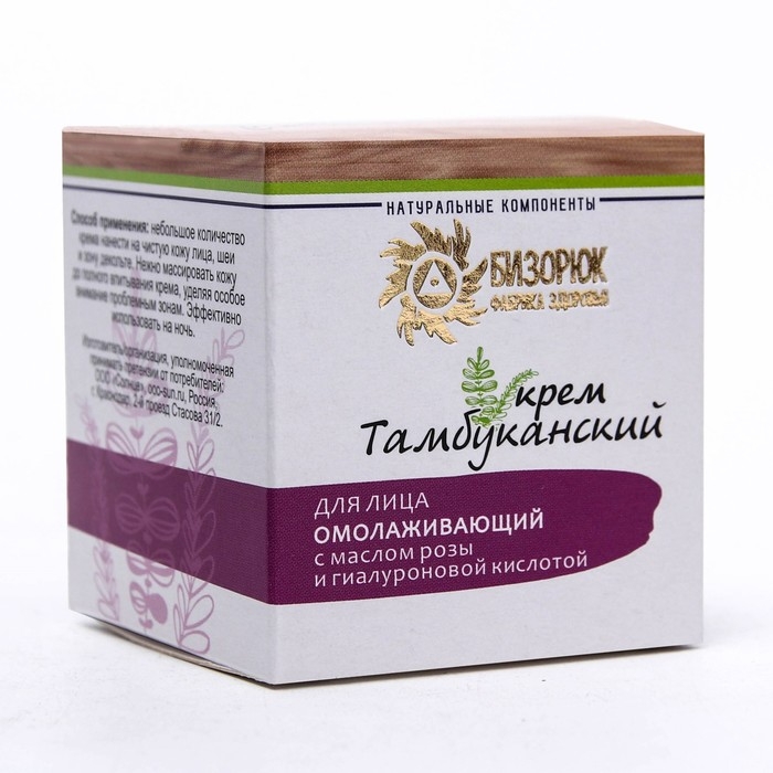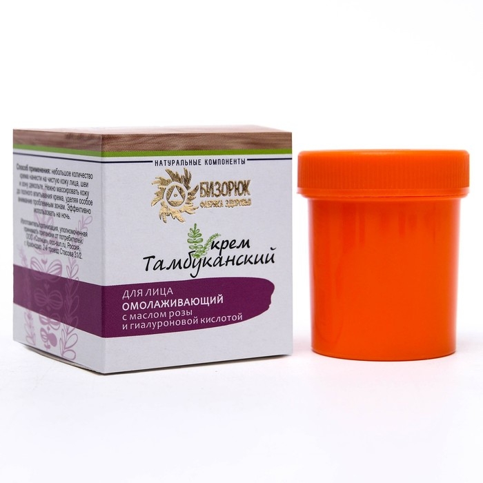 Крем органический для лица "Бизюрюк. Тамбуканский" с маслом розы и гиалуроновой кислотой, 40 г