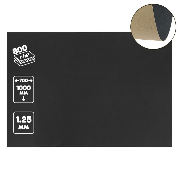 Картон переплётный (обложечный) 1.25 мм, 70 х 100 см, 800 г/м2, чёрный