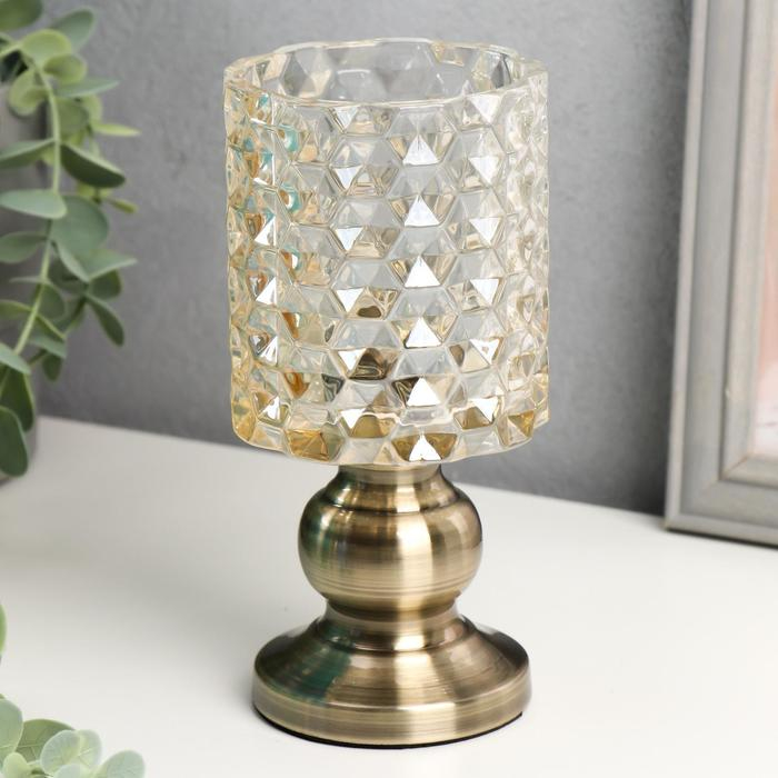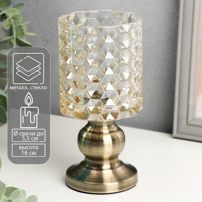 Подсвечник стекло на 1 свечу "Шестигранники" на ножке карамель 16х7,8х7,8 см