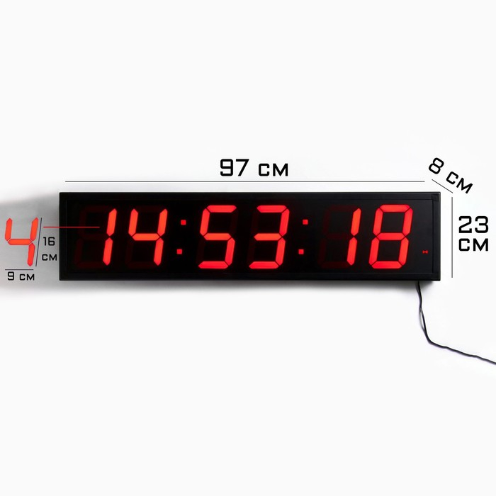 Часы электронные настенные "Соломон", таймер, секундомер, 97 х 8 х 23 см