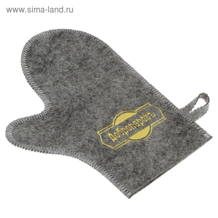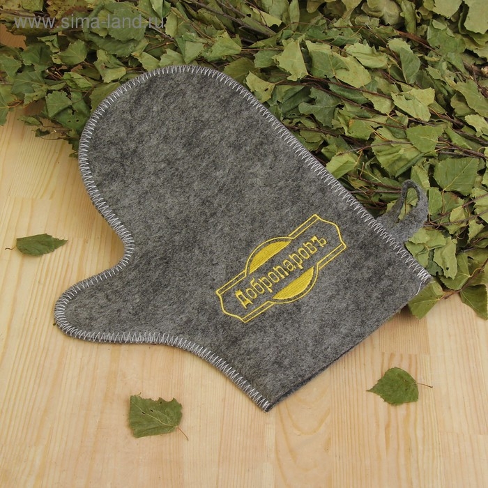 Рукавица для бани, серая с золотой вышивкой "ДОБРОПАРОВЪ"