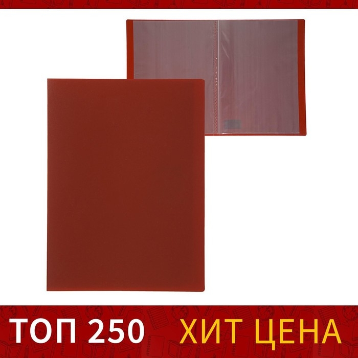Папка с 10 вкладышами А4, 500 мкм, Calligrata, текстура "песок", красная