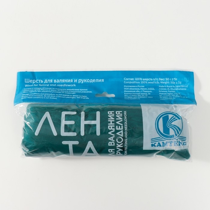 Шерсть для валяния 100% полутонкая шерсть 50 гр (041 изумруд)