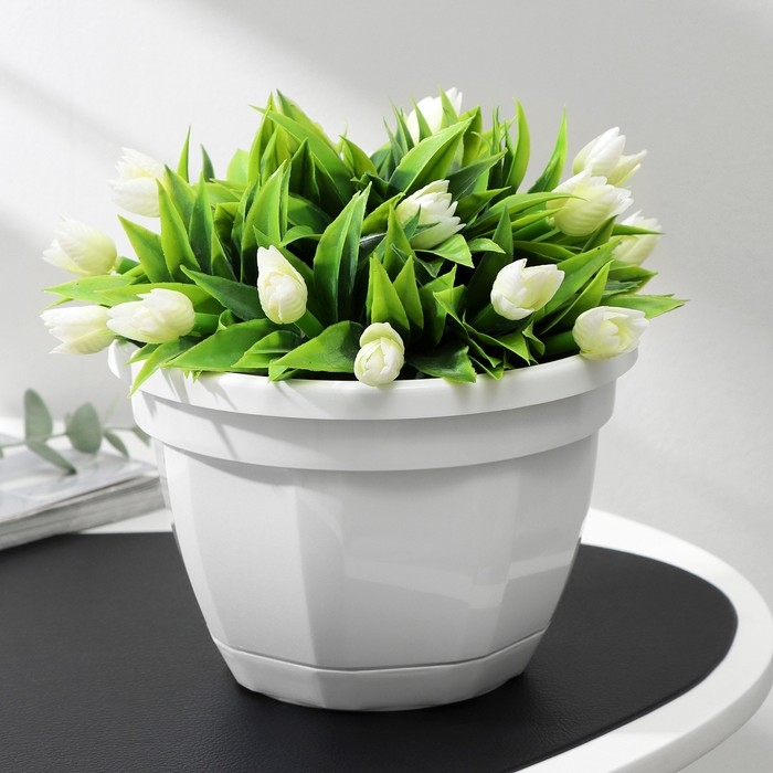 Горшок для цветов с поддоном «Ника», 1,5 л, d=17 см, h=12 см, белый